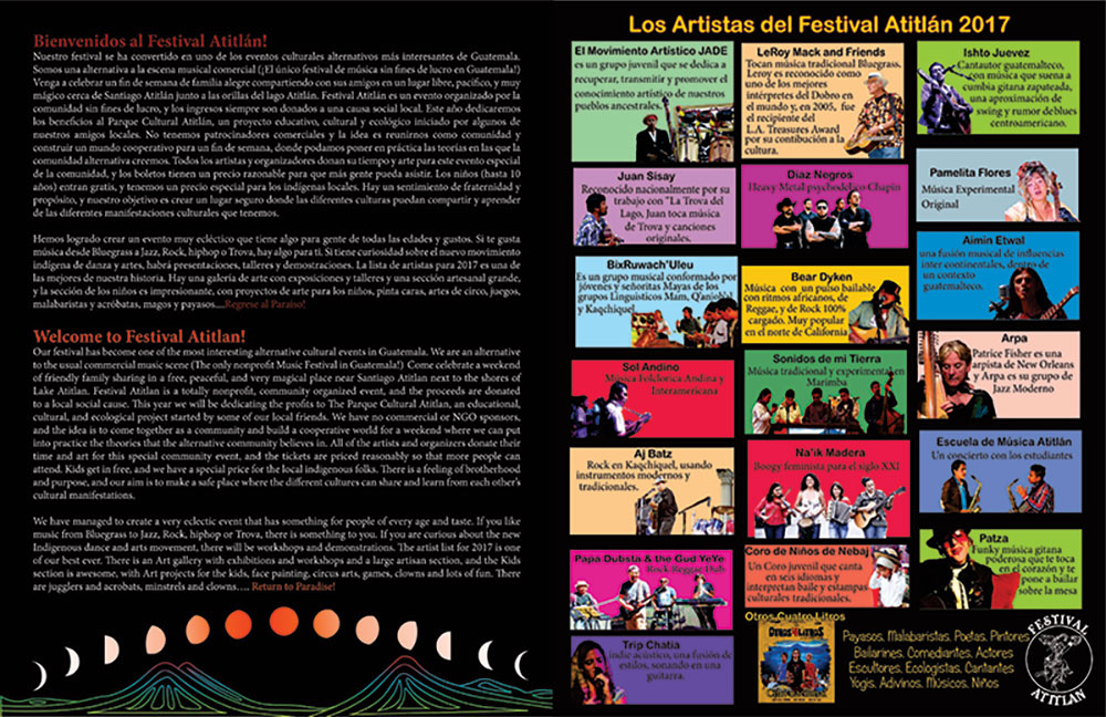 We published a magazine about the Festival, the Cultural park, our philosophy, and Lake Atitlan in mid February. Heres a copy... you can see a way better copy by downloading the .pdf version: